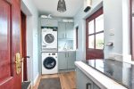 Range of high and low level units with contrasting formica worktops. Stainless steel bowl sink with mixer tap. Plumbed for appliances. Access to rear garden via hardwood door with glazed insets.