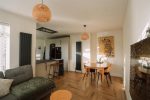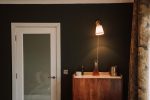 Range of storage units finished in matt seafoam green. Plumbed for appliances. Hot press with water tank. Herringbone flooring. Recessed spotlights.