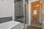 White suite comprising paneled bath with mixer taps. Low flush W/C. Semi pedestal wash hand basin mixer taps. Fully enclosed shower unit. Tiled flooring. Tiled splashback.