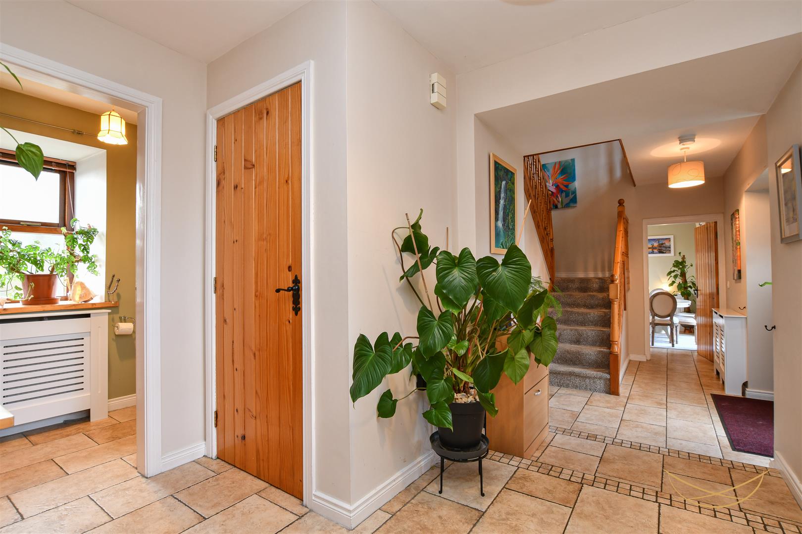 Hardwood front door with glazed feature inset. Tiled flooring. Access to storage.