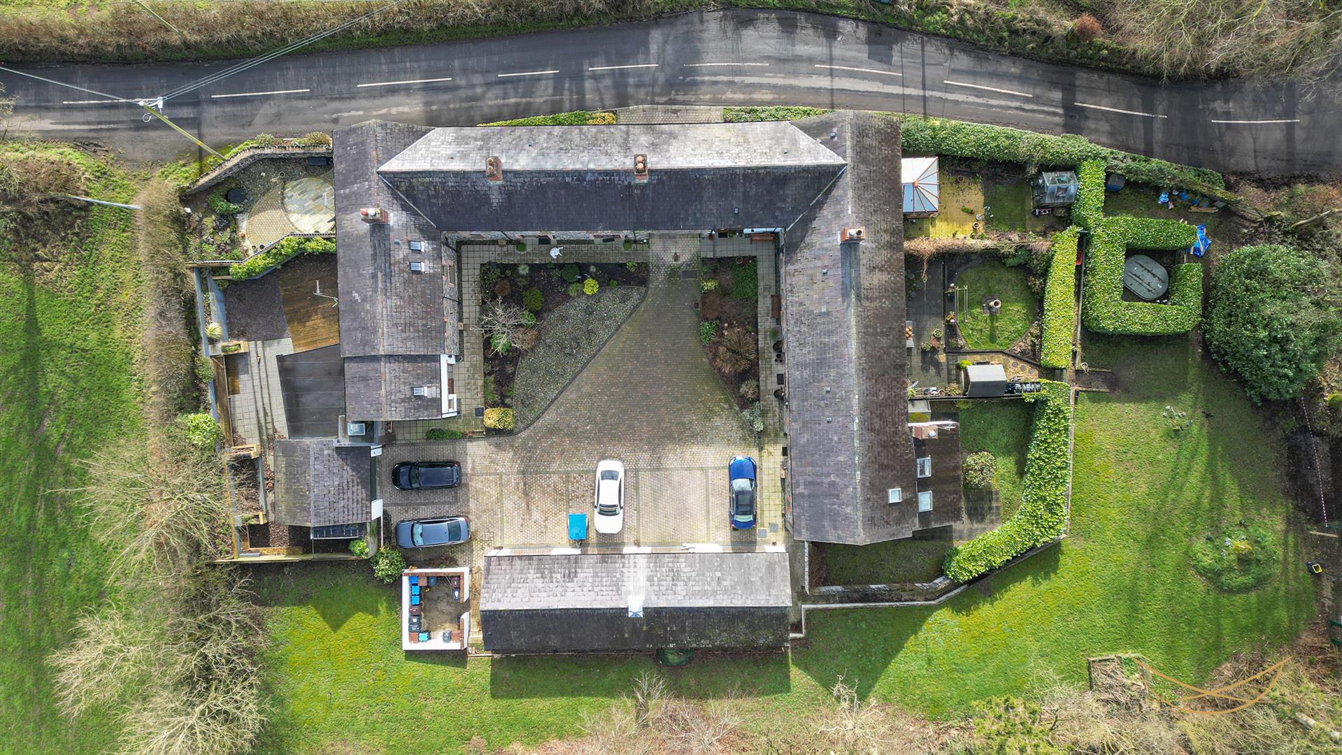 Externally, there is parking in the communal courtyard and a single garage. The landscaped rear gardens with laid in lawns, pond with fountain. Bin storage area.