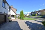 Front laid in lawn bordered by flower beds and mature shrubbery. Toberrmore paved driveway.