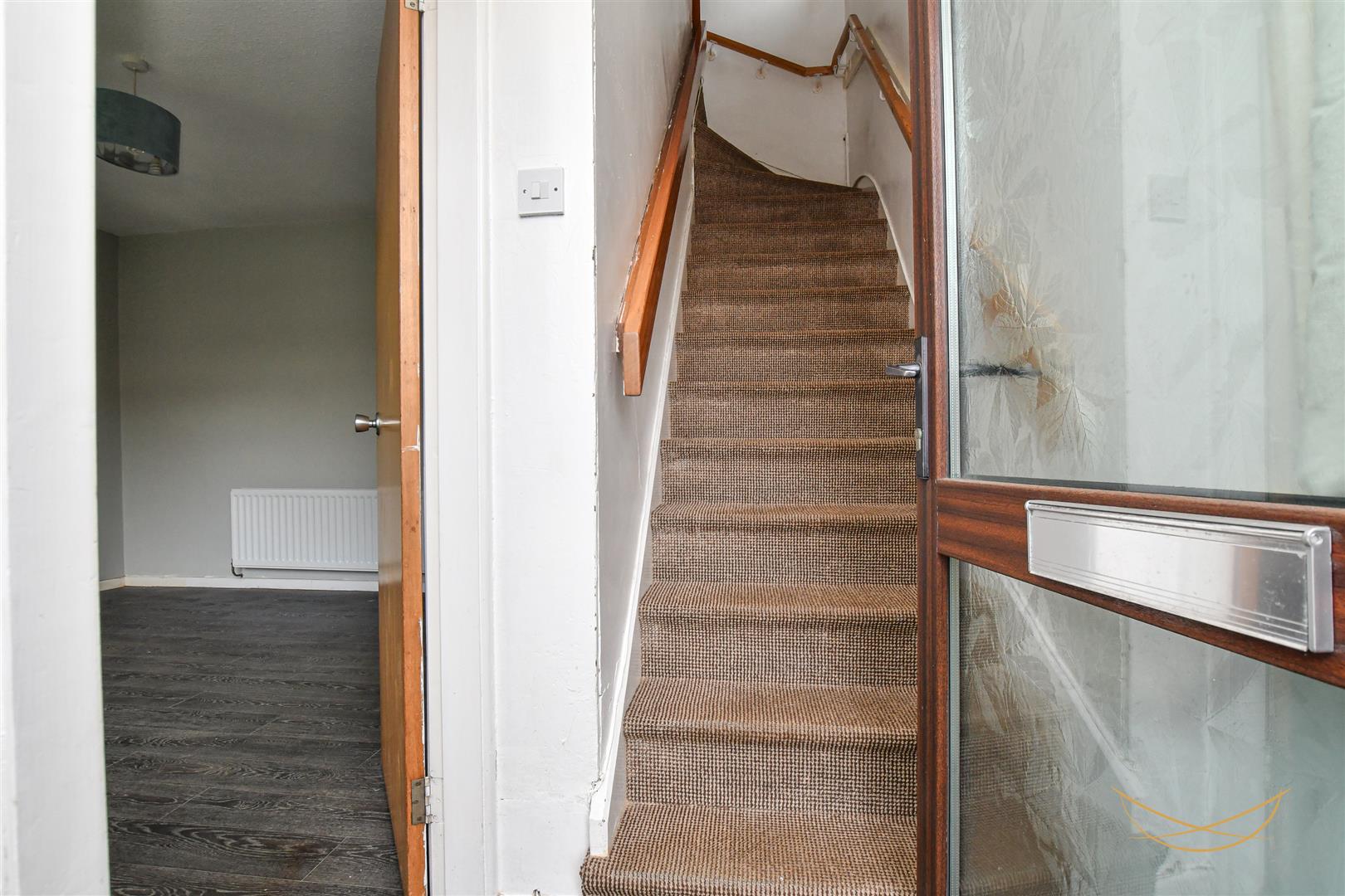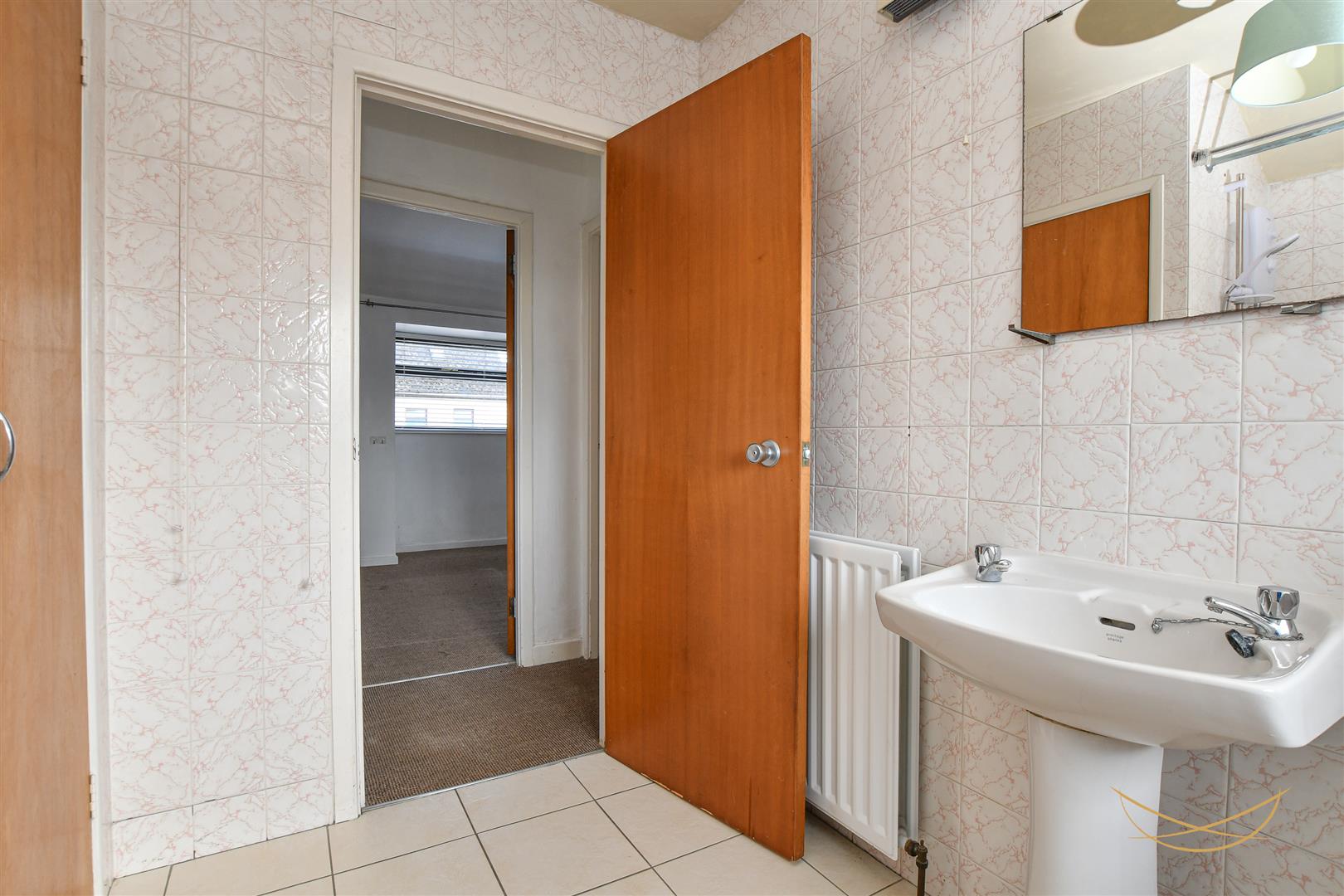 Range of high and low level units with contrasting worktops. Stainless steel 1.5 sink bowl unit with drainer and mixer taps. Space for oven/hob. Integrated extractor fan. Space for washing machine. Tiled flooring. Tiled splashback. Access to storage. Access to rear of the property.