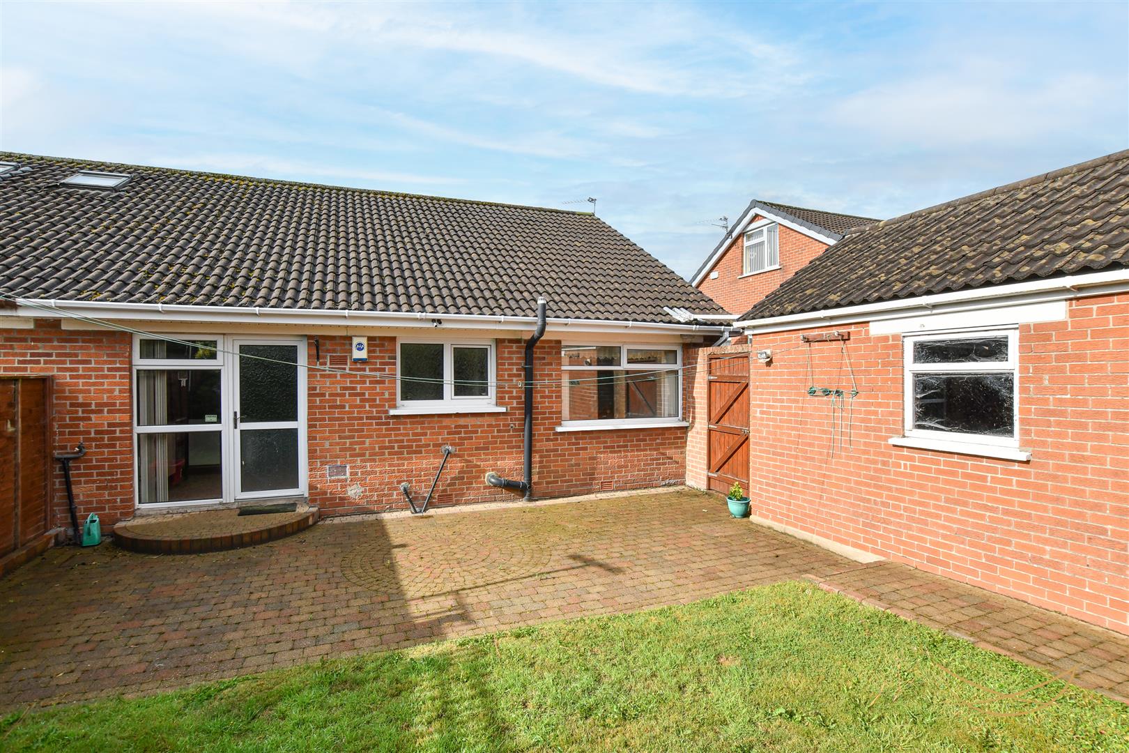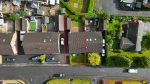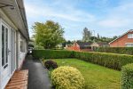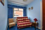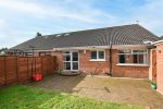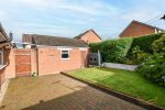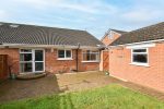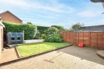 Rear enclosed garden with laid in lawn bordered by mature shrubbery. Feature paved seating area. outdoor tap.
