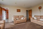 Feature electric fire with wood surround with matching mantle and hearth. Recessed spotlights.
