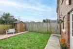 Enclosed rear garden with laid in lawn and feature paving. Outdoor tap. Outdoor light.