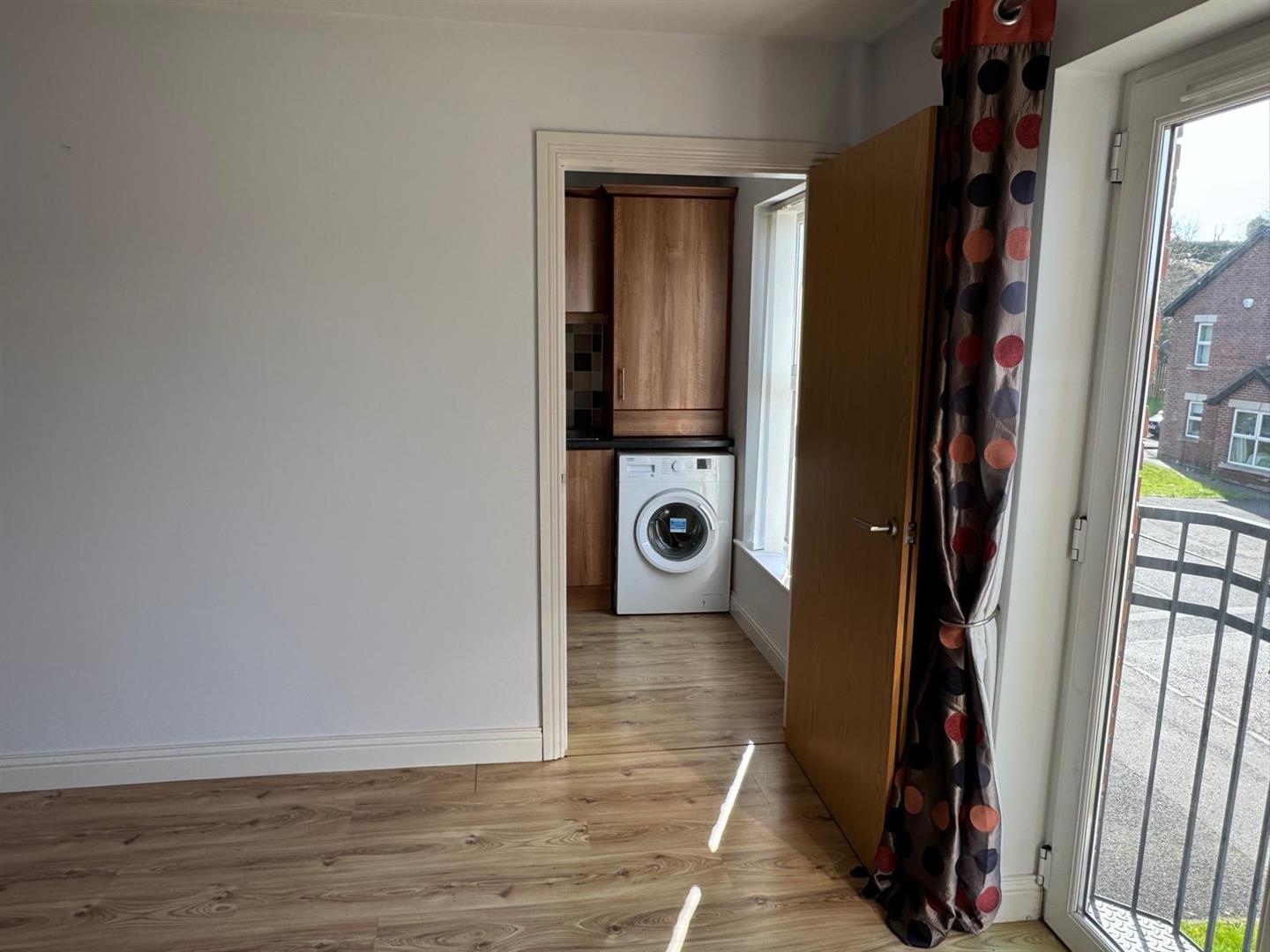 Range of high and low level units with formica worktops. Stainless steel sink unit with drainer and mixer taps. Integrated electric oven. Integrated electric oven. Stainless steel extractor fan. Space for washing machine. Laminate wood effect flooring. Tiled splashback.