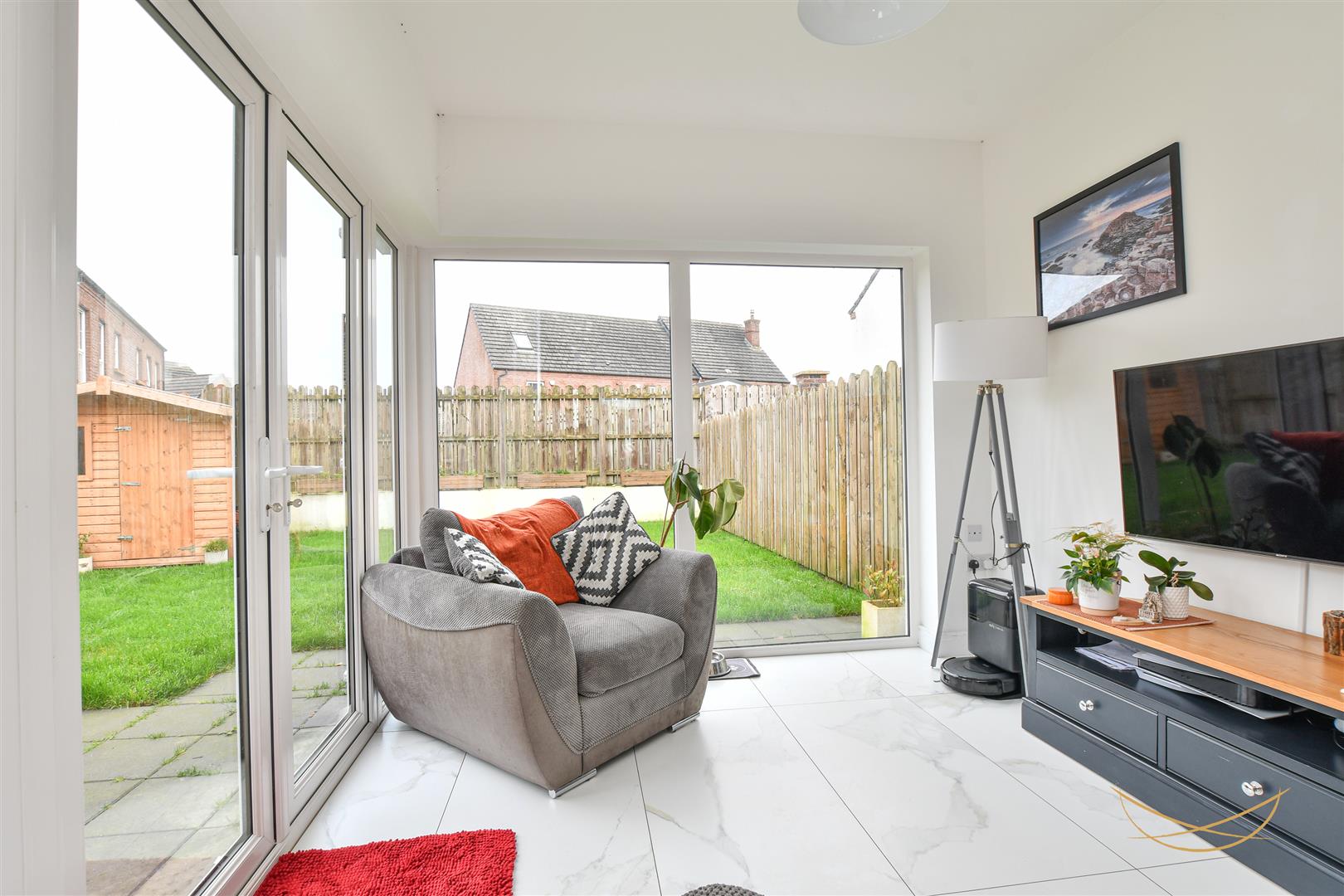 Welcome to 47 Blackrock Crescent, a beautifully finished three-bedroom semi-detached home nestled within a recently constructed cul-de-sac in one of Newtownabbey’s most desirable areas. Ideally located for commuters, this impressive property offers quick and easy access to the M2 at Sandyknowes, providing a smooth journey to Belfast City Centre and beyond. Inside, the home boasts a spacious lounge with a feature electric fire, a stylish shaker-style kitchen open plan to an informal dining area and bright sunroom, along with a convenient downstairs W.C., an ensuite master bedroom, and a contemporary four-piece family bathroom suite. The second floor offers excellent potential, already set up for a five-bedroom conversion with full-height ceilings—perfect for growing families or those seeking extra space. Combining modern design, flexibility, and a prime location, this is an ideal home for first-time buyers and young families alike.