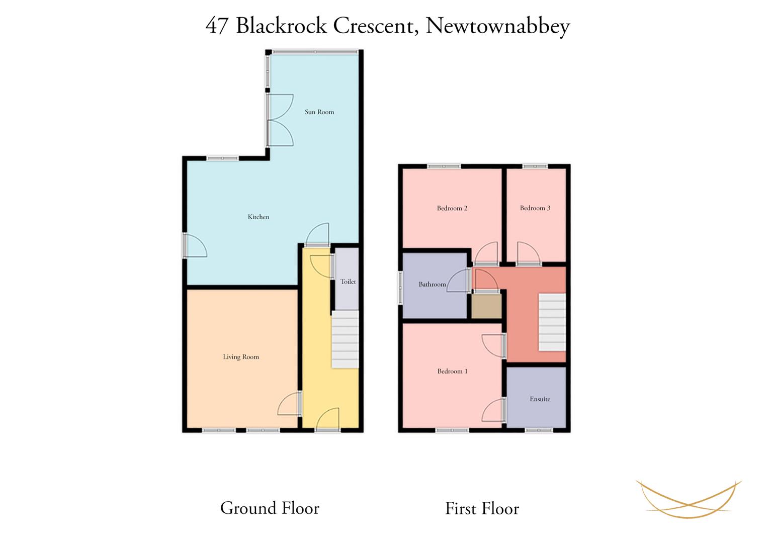 Welcome to 47 Blackrock Crescent, a beautifully finished three-bedroom semi-detached home nestled within a recently constructed cul-de-sac in one of Newtownabbey’s most desirable areas. Ideally located for commuters, this impressive property offers quick and easy access to the M2 at Sandyknowes, providing a smooth journey to Belfast City Centre and beyond. Inside, the home boasts a spacious lounge with a feature electric fire, a stylish shaker-style kitchen open plan to an informal dining area and bright sunroom, along with a convenient downstairs W.C., an ensuite master bedroom, and a contemporary four-piece family bathroom suite. The second floor offers excellent potential, already set up for a five-bedroom conversion with full-height ceilings—perfect for growing families or those seeking extra space. Combining modern design, flexibility, and a prime location, this is an ideal home for first-time buyers and young families alike.