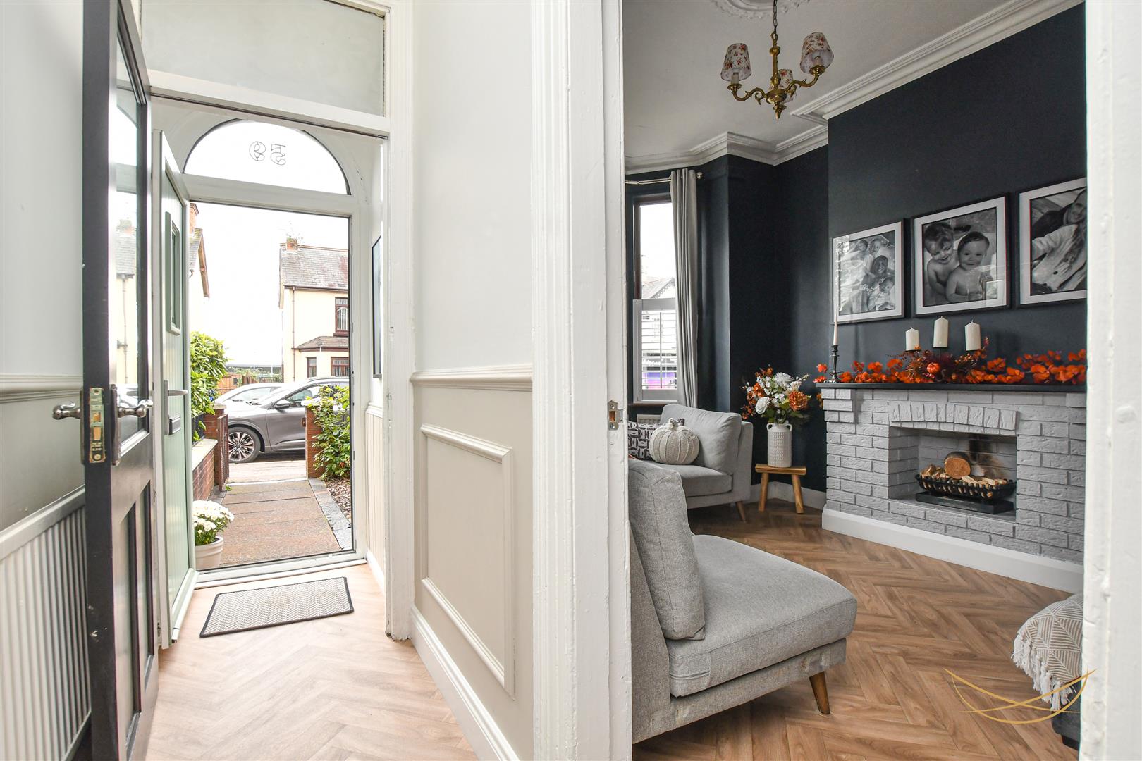 Feature bay fronted window. Open fire. Vinyl flooring. Cornice ceilings. Feature decorative ceiling rose.