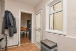 Hardwood front door with glazed feature inset. Vinyl flooring. Feature victorian ceiling mouldings.