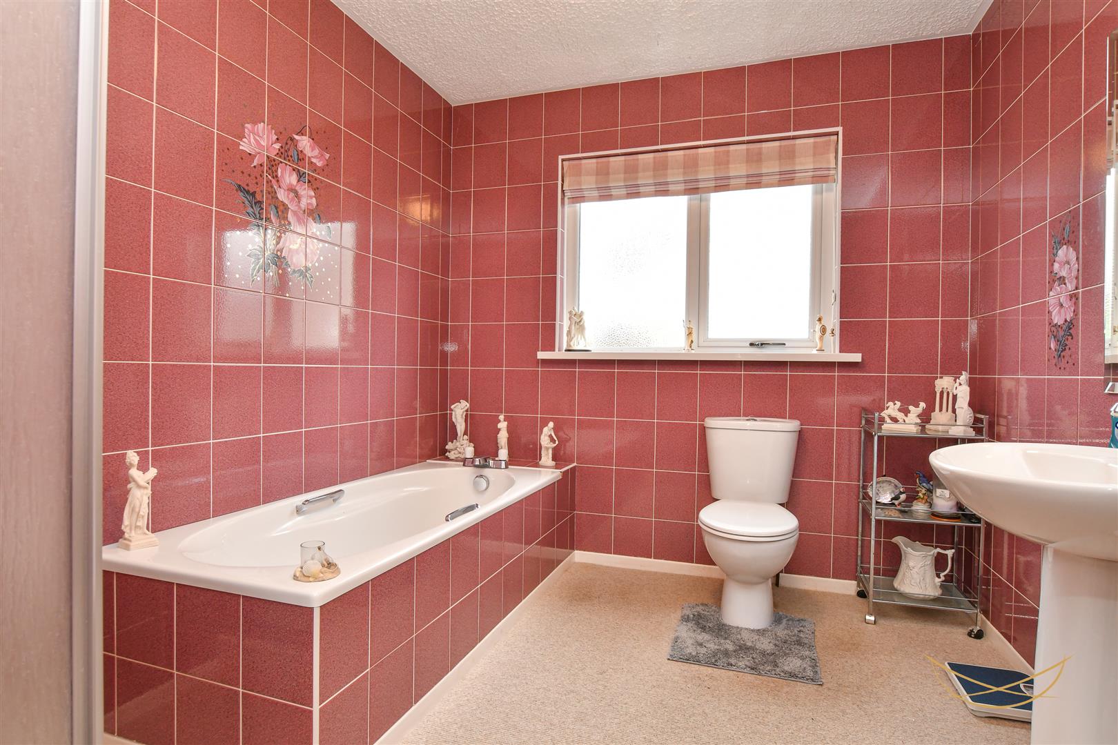 Low flush W/C. Tiled flooring.