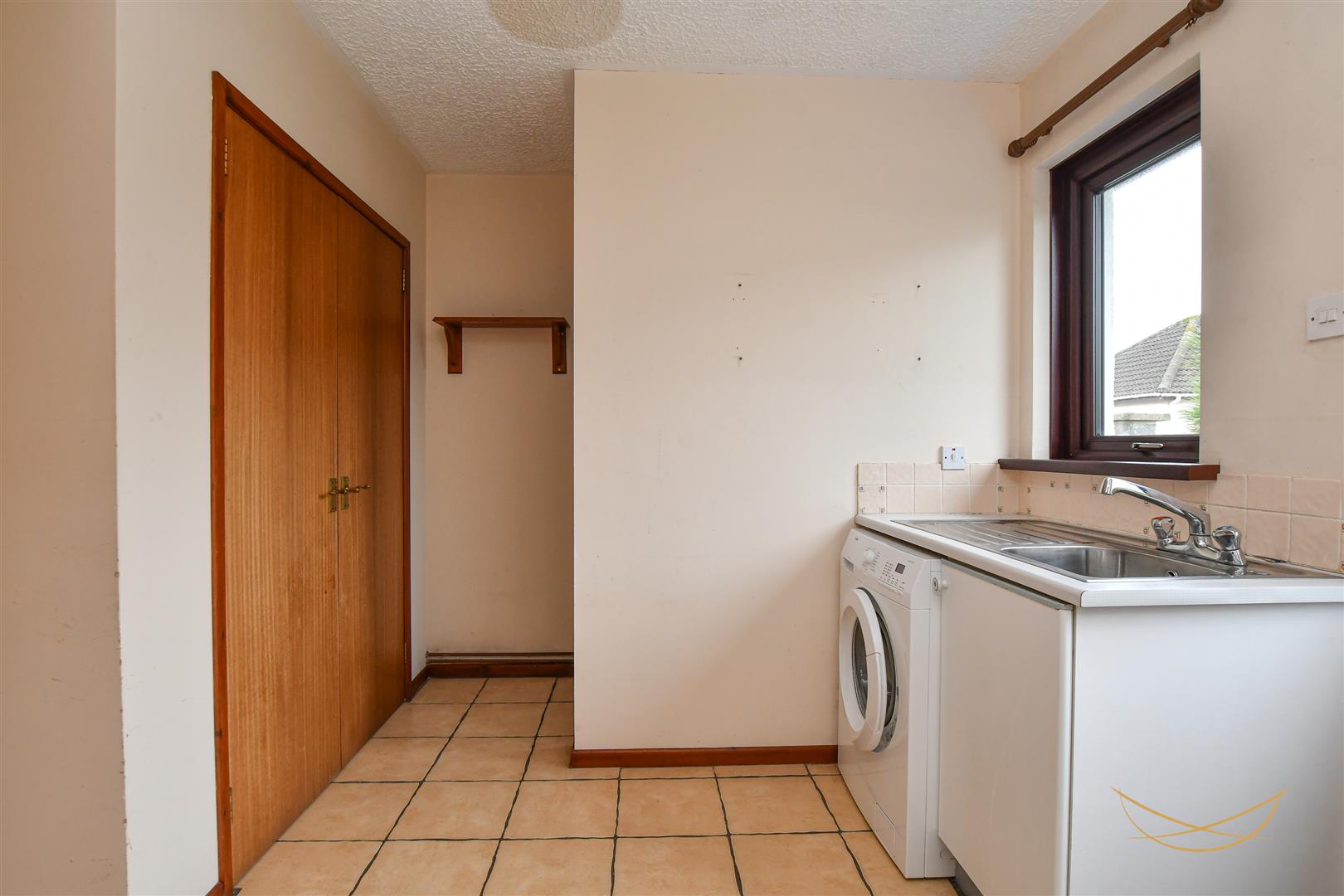 Space for washing machine. Stainless steel sink unit with drainer and mixer taps. Tiled flooring. Access to storage. Access to rear garden.