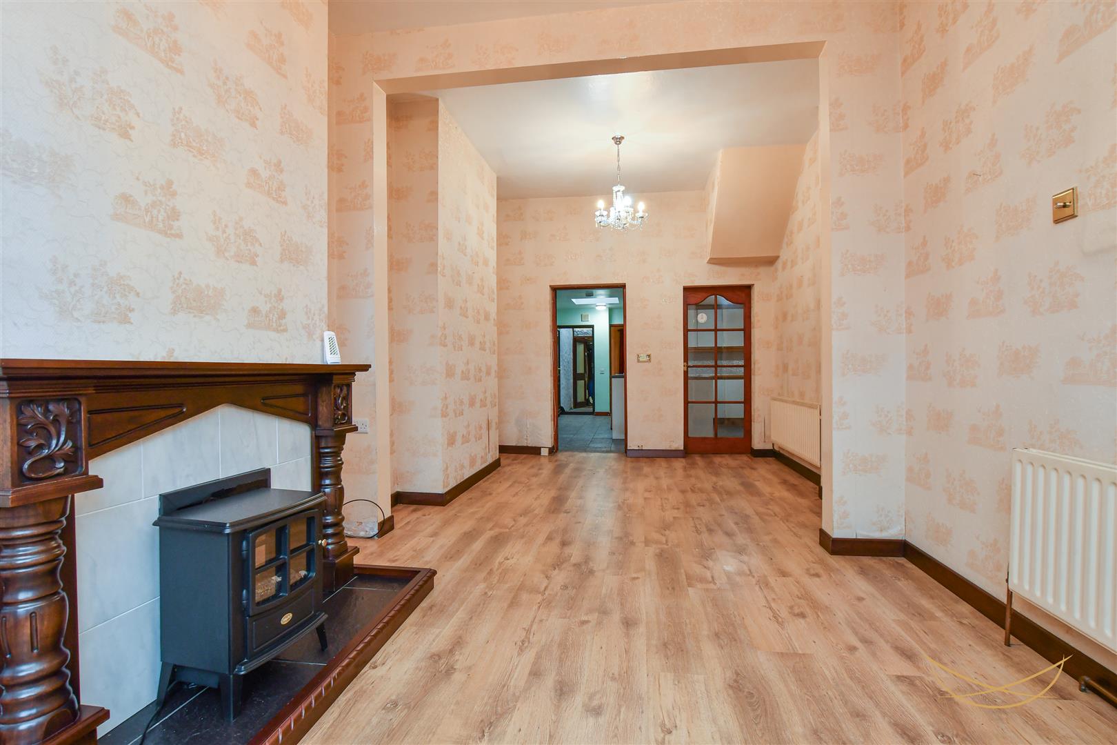 Bay front window. Feature open fire with tiled inset and hearth. Ornate mahogany surround and mantle. Laminate wood effect flooring.