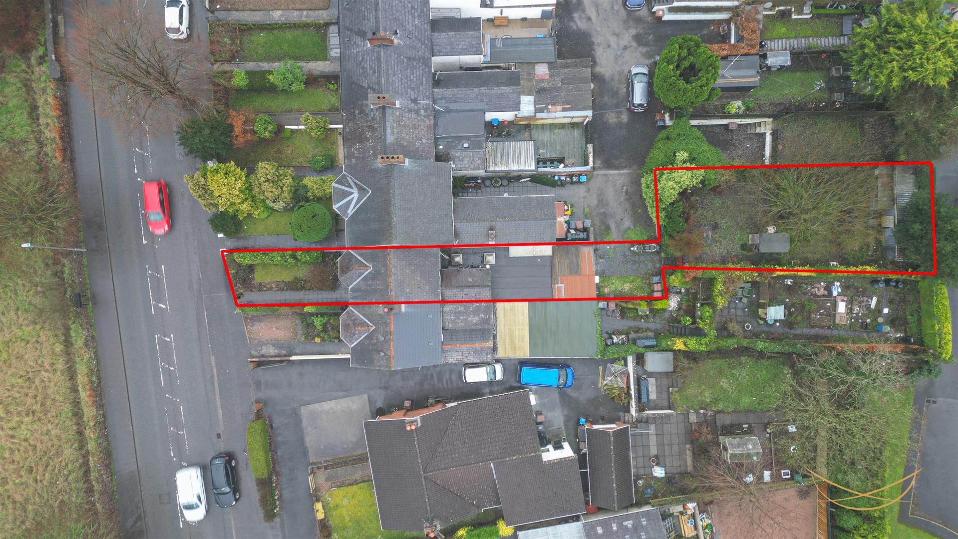 Rear enclosed gardens with laid in lawns, mature shrubbery and paving. Parking.