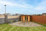 Rear large garden with laid in lawns, feature paving area with garden room. Paved patio leading to detached single garage. Outdoor lighting. Outdoor tap.