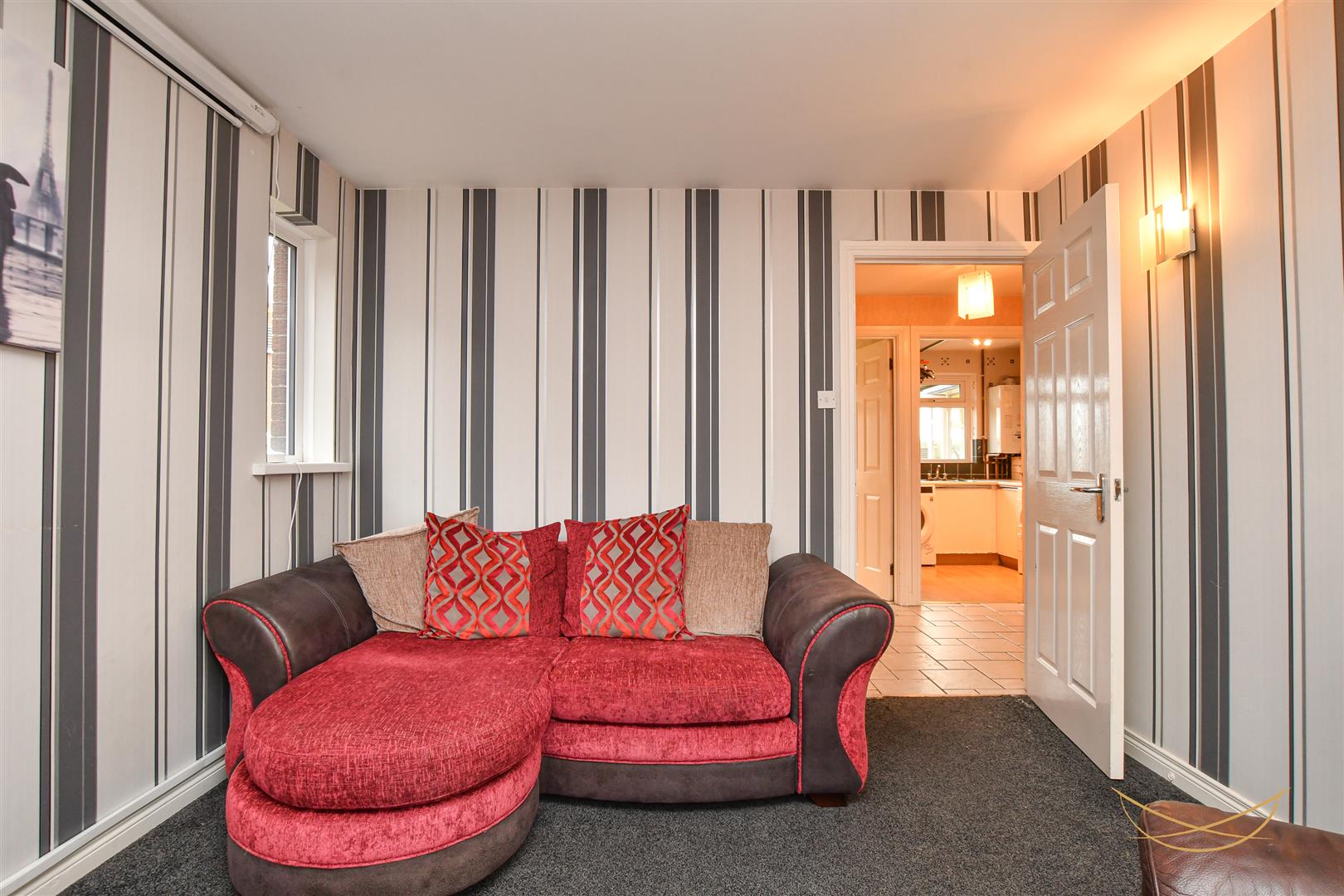Composite front door. Feature glazed panels. Tiled flooring. Access to storage.