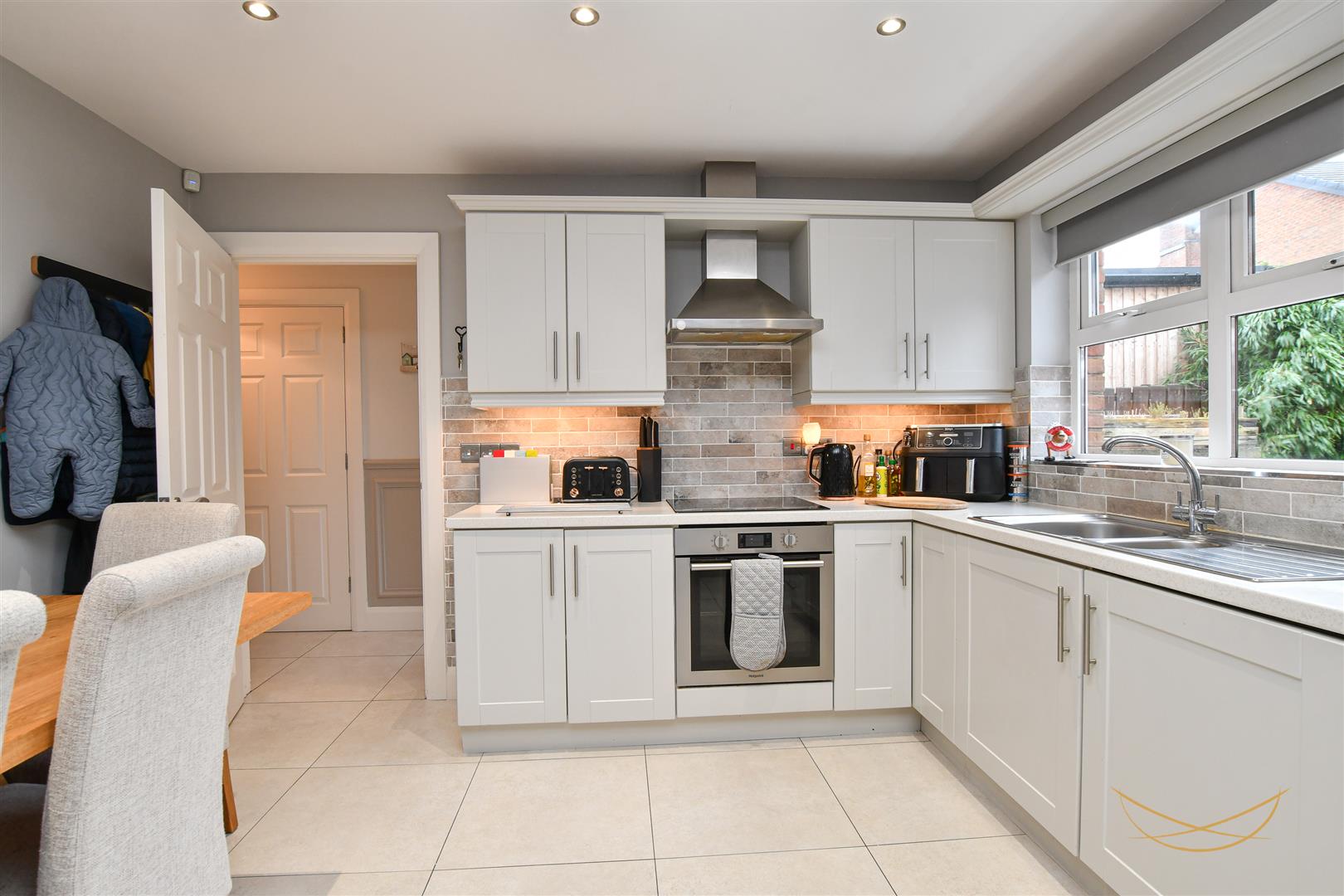 This exceptional home offers the perfect blend of space, style and comfort for modern family living. Inside, a bright and spacious lounge provides a welcoming setting to relax and unwind, while the charming shaker-style kitchen with informal dining area creates a wonderful hub for everyday life and entertaining alike. A delightful sunroom overlooks the garden, offering additional versatile living space filled with natural light. Practicality is well catered for with a separate utility room to keep household tasks neatly tucked away.