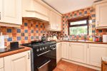 Farmhouse style kitchen with high and low level shaker units and contrasting formica worktops, 1 /1 stainless steel sink and drainer unit with mixer tap. Quarry tiled splashback. Plumbed for appliances.