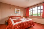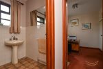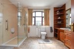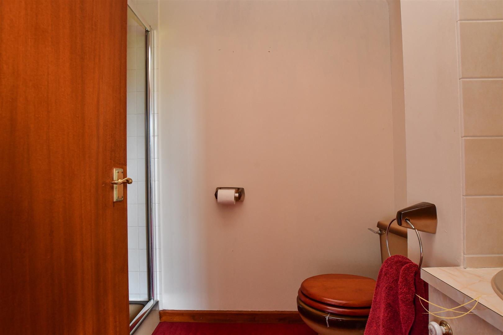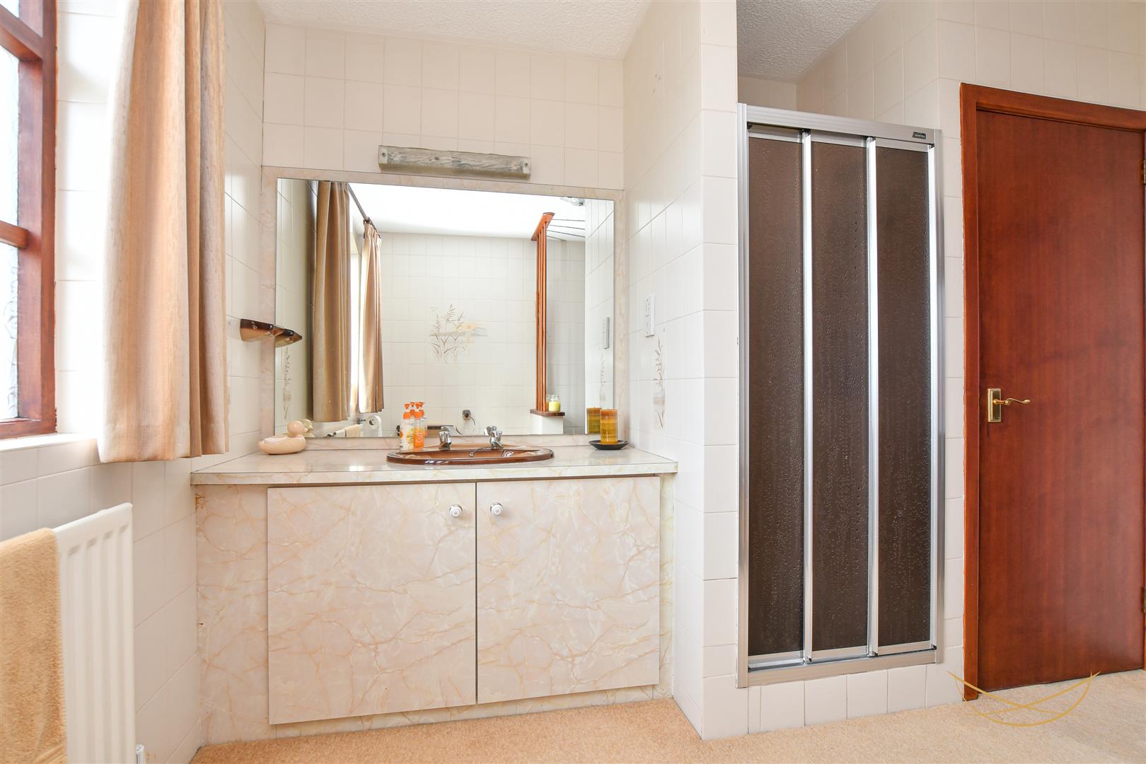 Five piece bathroom suite with panelled bath. Low flush W/C. Bidet unit. Fully enclosed main shower unit. Vanity style sink unit with mixer taps. Tiled walls.
