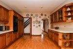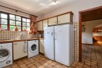 Range of high and low level units with contrasting wood effect worktops. Stainless steel sink unit with drainer and mixer taps. Space for washing machine. Space for dryer. Space for freezer/ freezer. Tiled flooring. Access to garage.